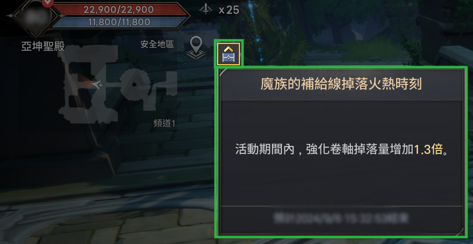 - 部分火熱時刻可能不會顯示下方的圖示,若出現此情況,可於遊戲畫面上方的[被動視窗]查看進行中的火熱時刻套用的增益。