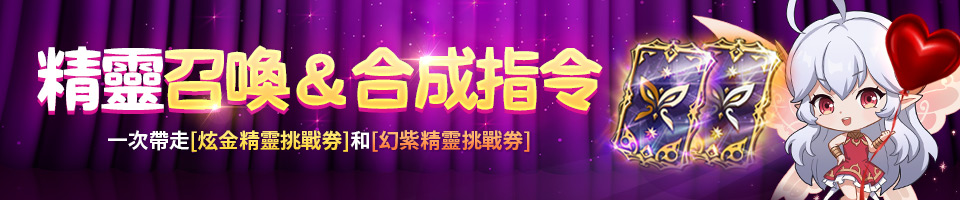 | 嘗試使用稀有級以上精靈合成10次 | 幻紫精靈挑戰券(活動) | 1 |