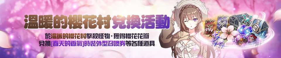櫻花滿開之際 | 櫻花(活動) x2 | 經驗值獲得量 +1% | 2025.03.25 08:00 |