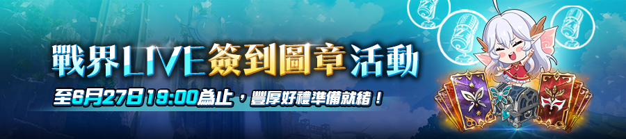 為了讓大家能以期待的心情迎接直播,白蒂精心準備了戰界LIVE簽到圖章活動!(❁´◡`❁)(❁´◡`❁)