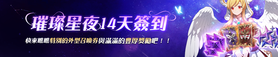 絢爛星空下,可獲得滿滿特別好禮的「璀璨星夜14天簽到」開跑啦!