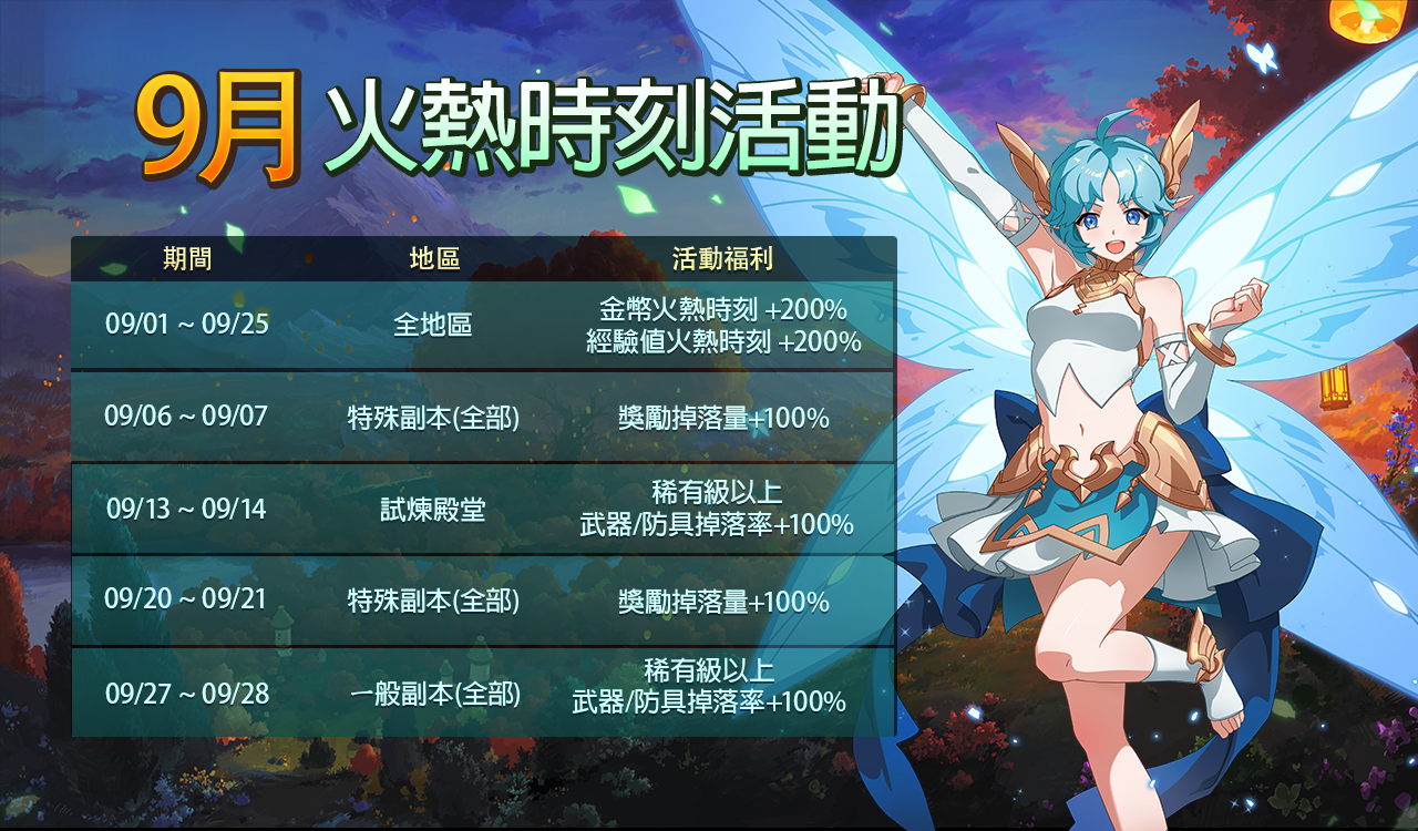 請務必確認於沁涼9月進行的火熱時刻日程,與9月火熱時刻活動福利一起冒險吧!