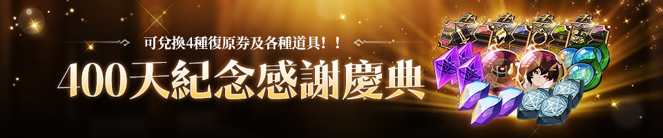 | 400天派對燦爛的飾品復原券(活動) | 1 | 300 | 每個帳號1次 |