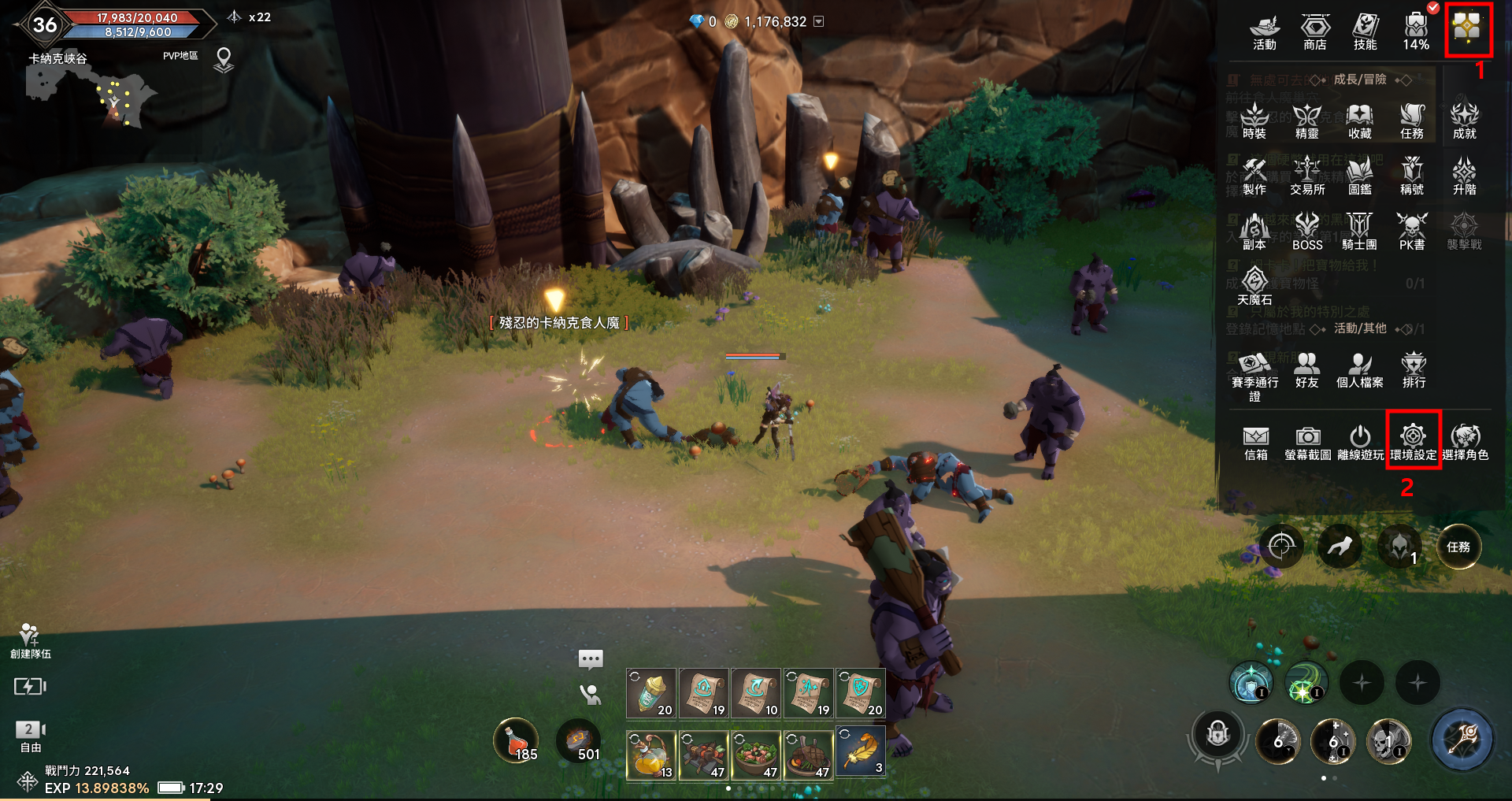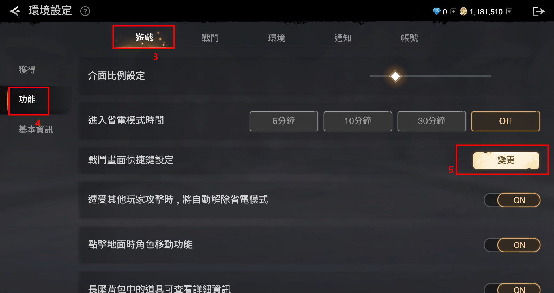 - 點擊畫面右上方的選單 - [環境設定] - [遊戲] - [功能]。