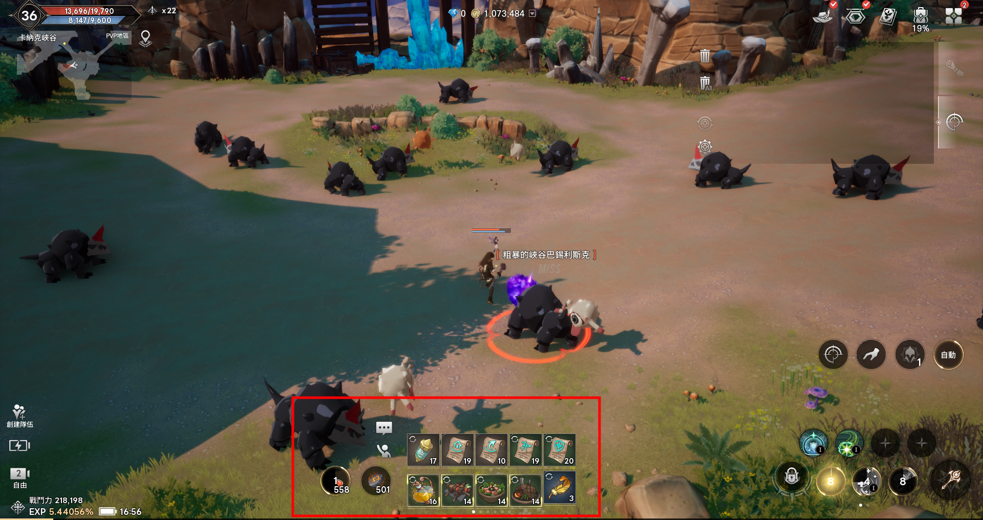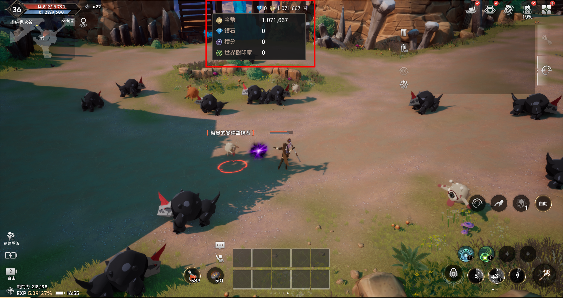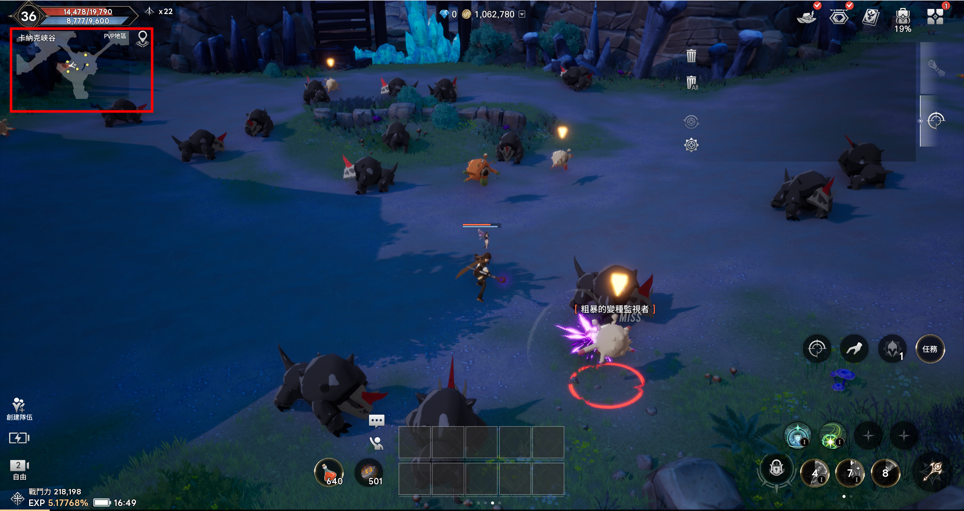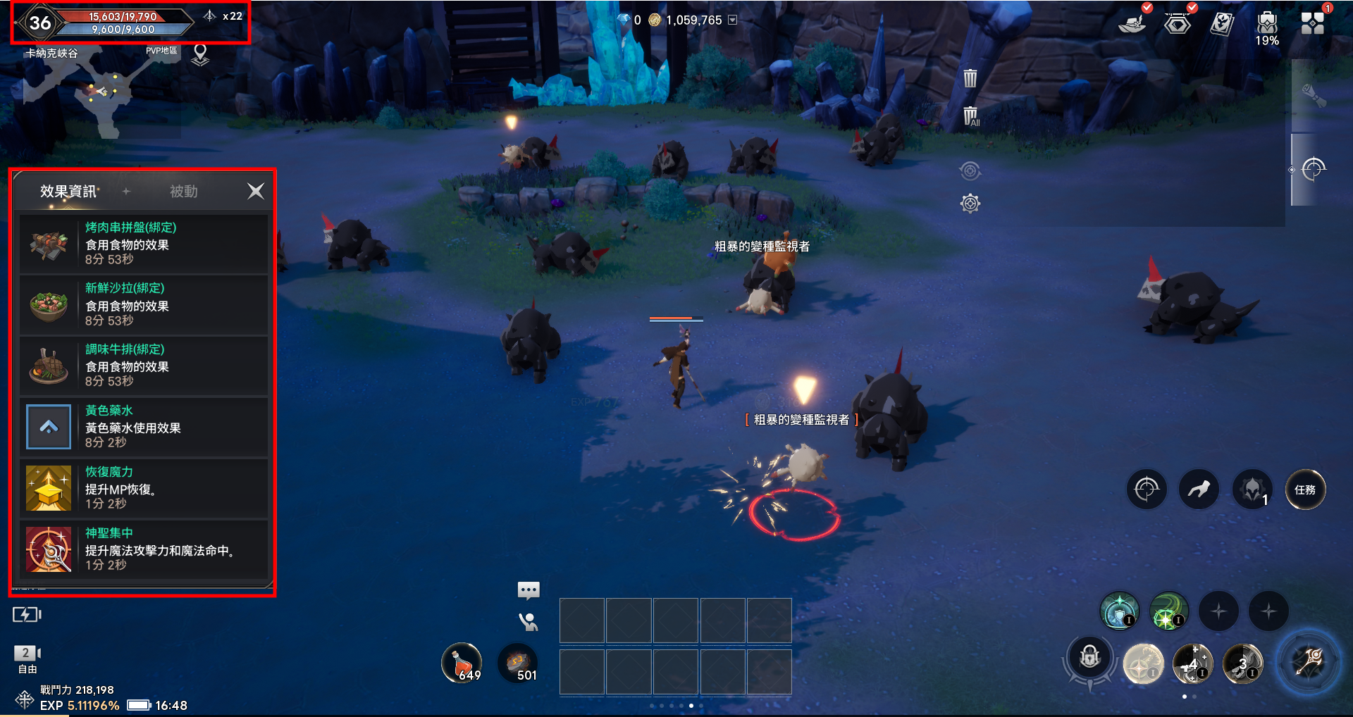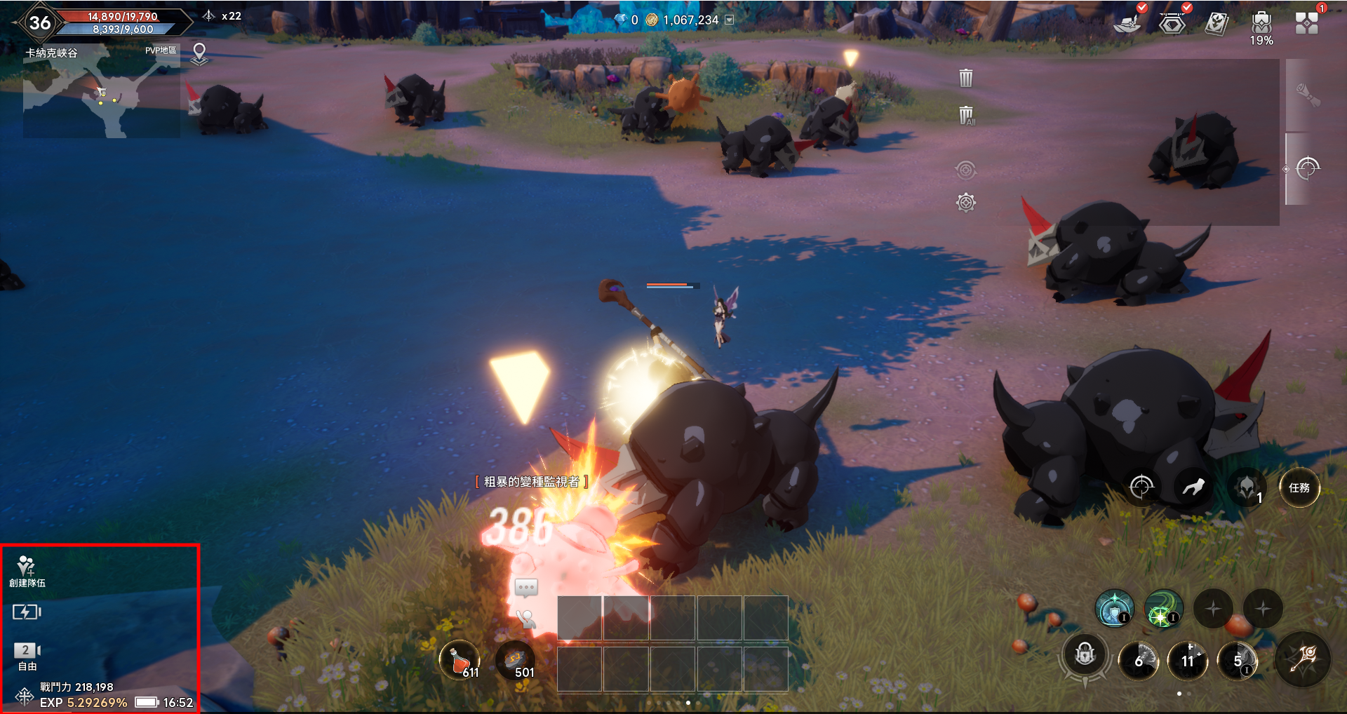 -可於遊戲畫面左下方查看創建隊伍功能、省電模式、變更鏡頭視角功能及經驗值資訊等。