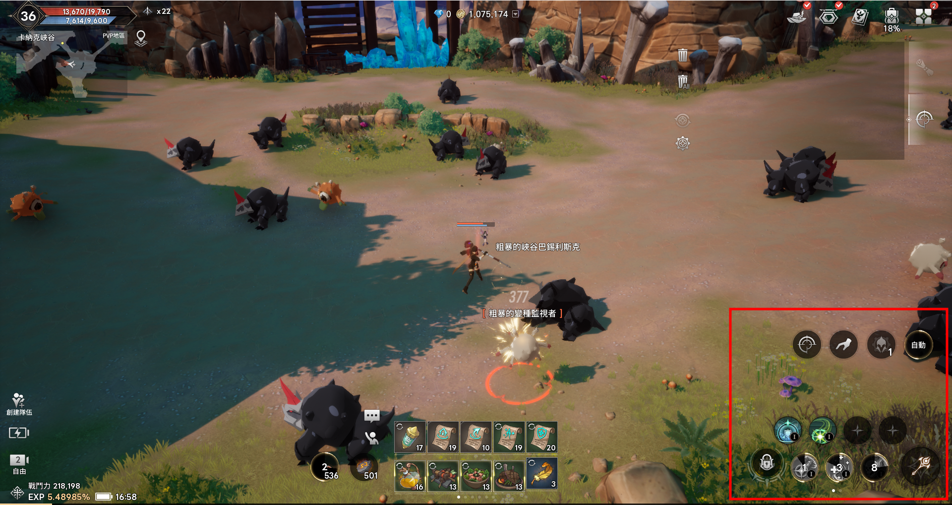 -自動:點擊後可設定自動狩獵ON/OFF。