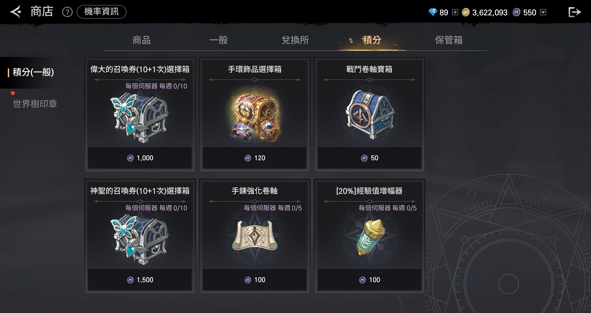 -可於積分頁面中,使用積分及世界樹印章來購買商品。