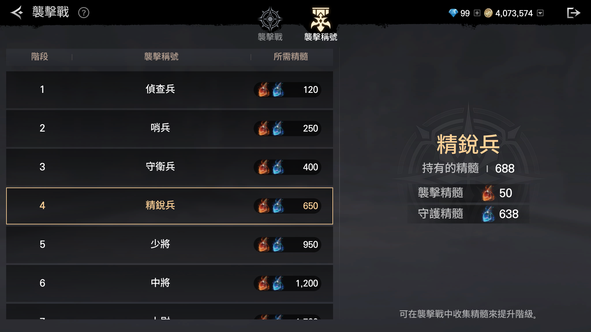 -根據持有的襲擊&守護精髓數量,將於襲擊戰中顯示[襲擊稱號]階級。