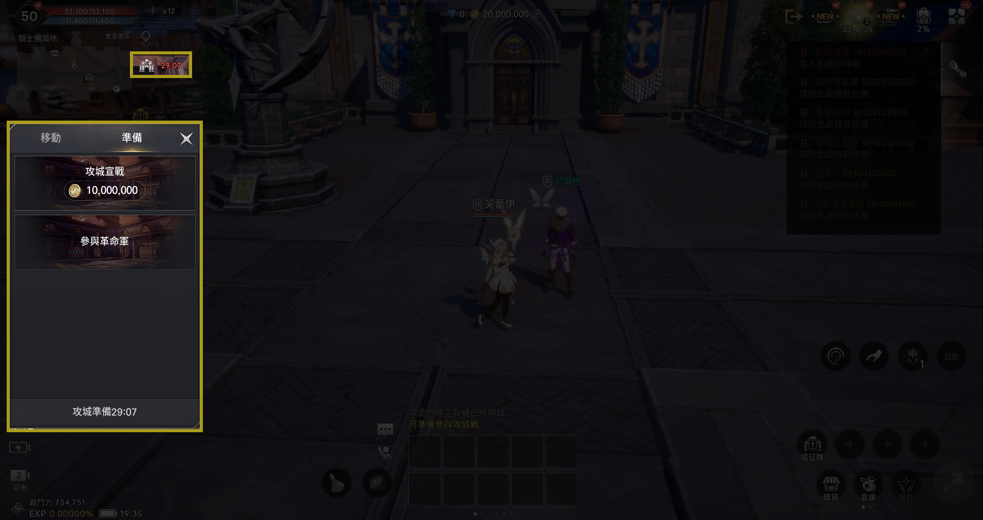⑵ 騎士團團長可於[攻城戰資訊] → [準備]介面中選擇參與革命軍,並透過參與革命軍鈕入場。