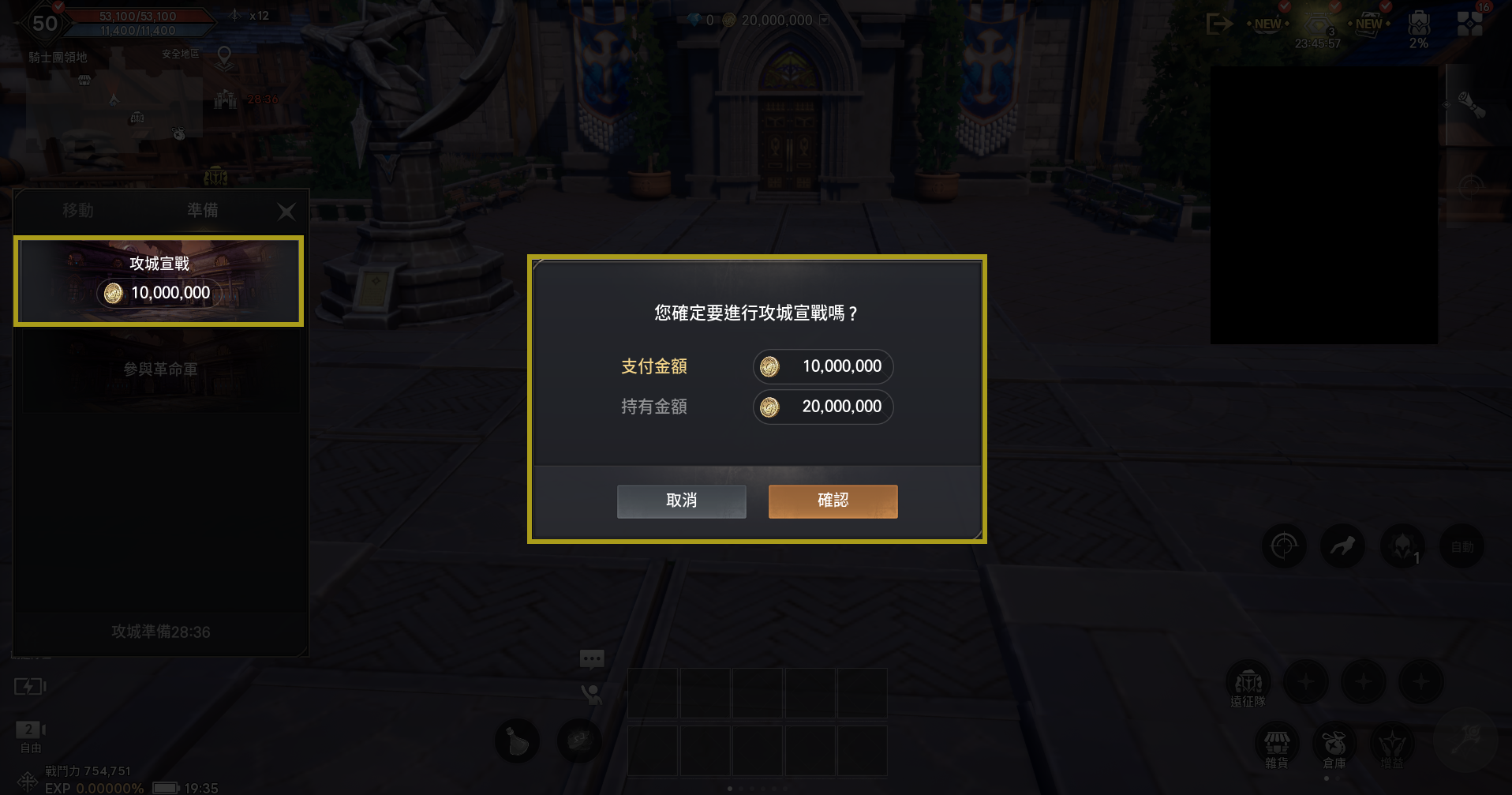 - 符合攻城戰入場條件的騎士團團長,可於攻城戰準備/進行期間宣布攻城。