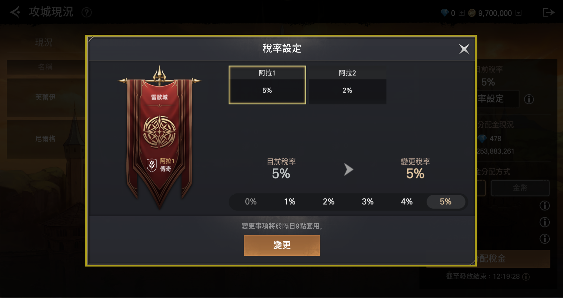 - 於世界攻城戰中成功守城的騎士團無法調整稅率。