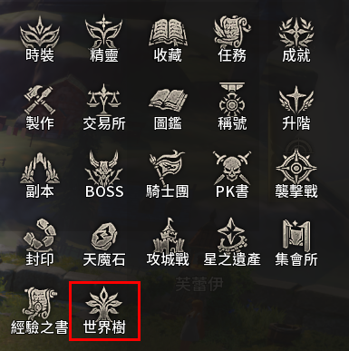 - 請依序點擊畫面右上方選單 - 世界樹。