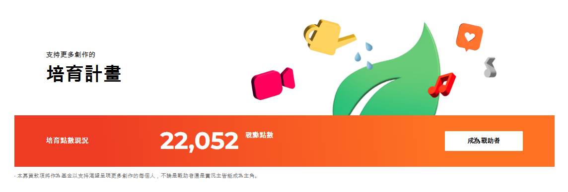 並將累積參與培育計畫的戰助者所儲值金額的1%。