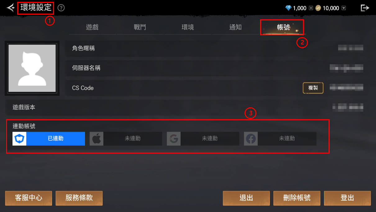 路徑:遊戲內[環境設定] - [帳號] - [連動帳號]