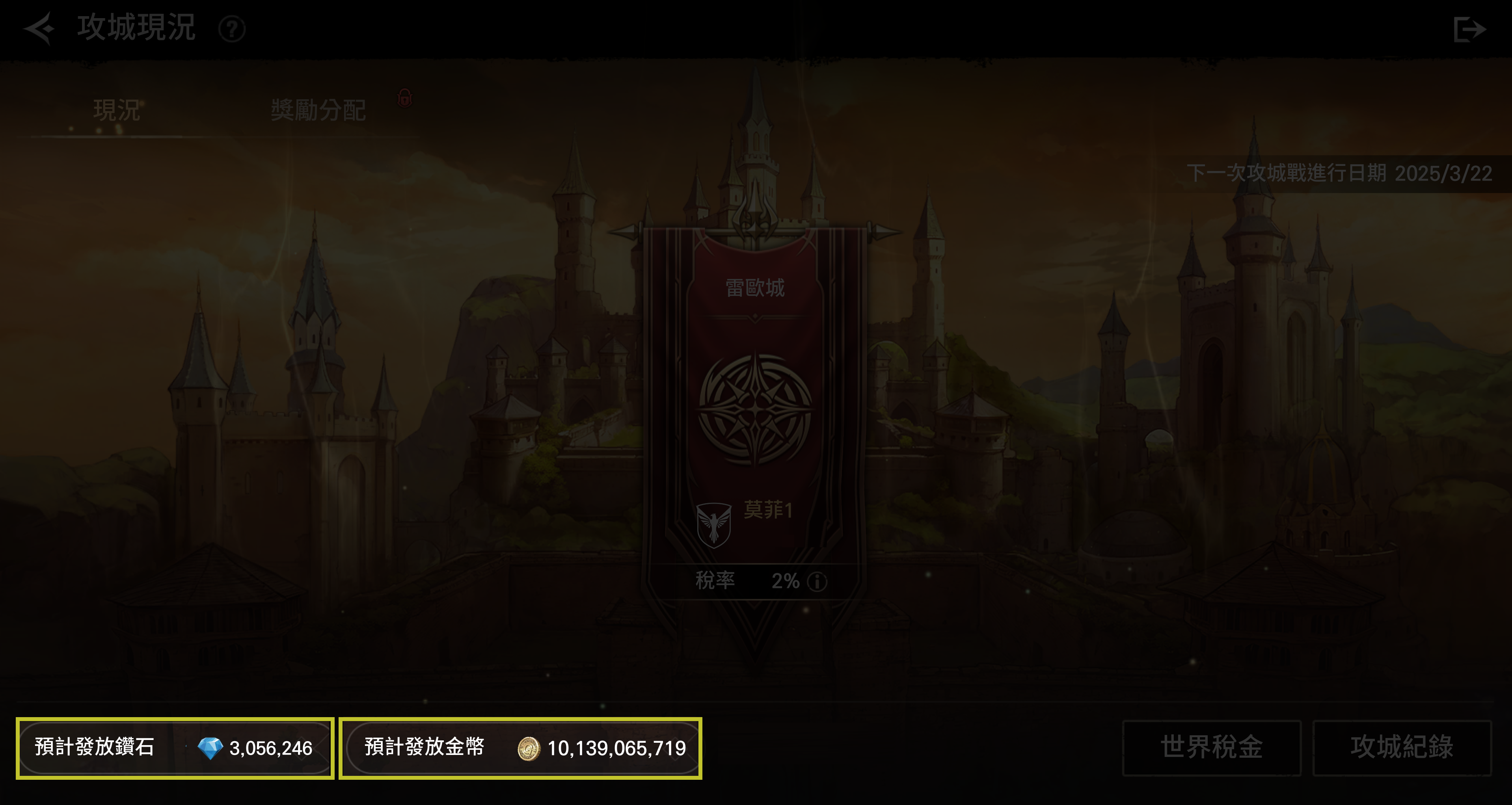 ※世界攻城的稅金發放方式,將於日後更新後進行說明。