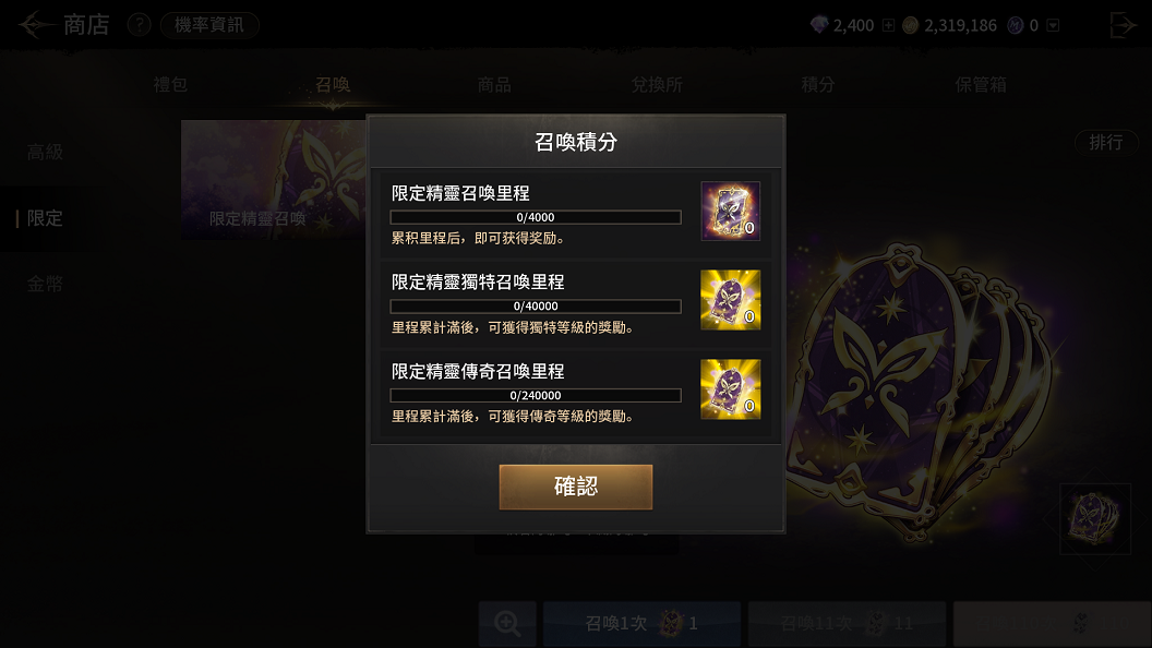 → 里程:達成累積條件時,可獲得確定召喚券