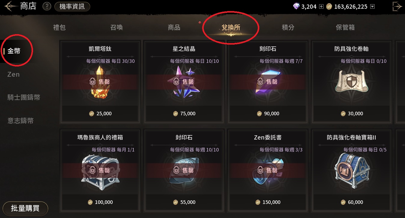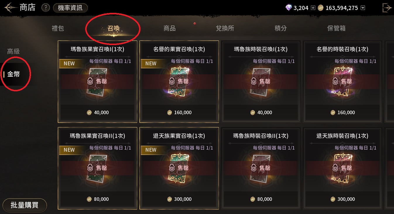 每日金幣招喚券跟每日金幣獎勵都能金幣購買