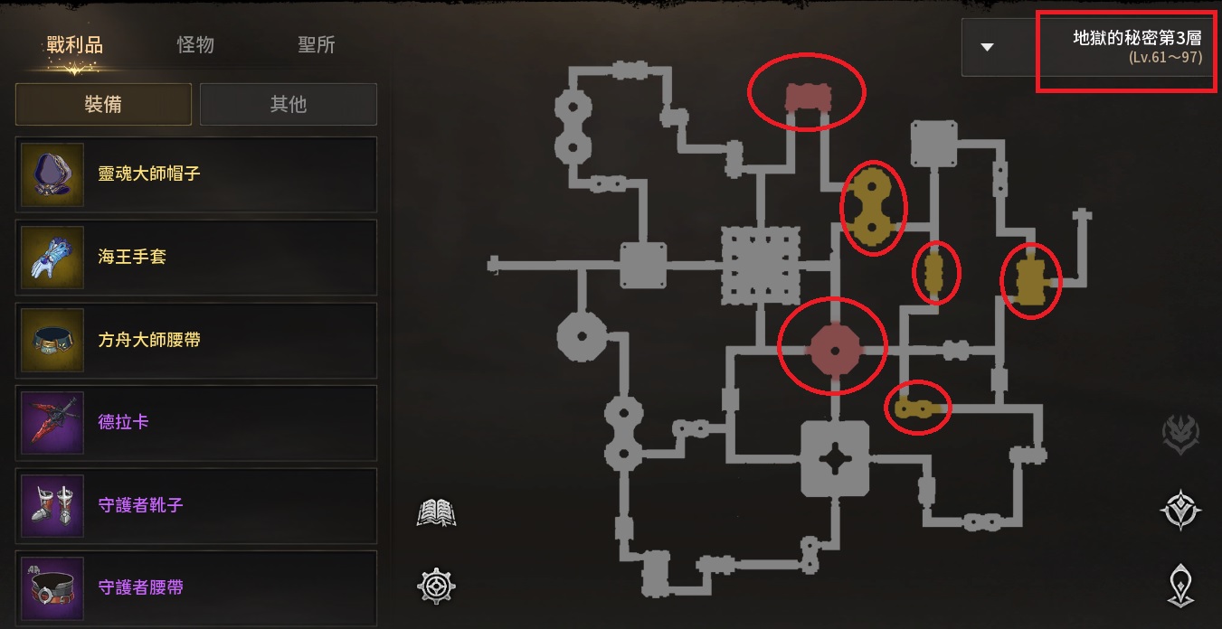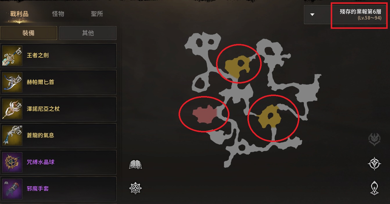 第1個業報6樓跟第2個地獄3樓 會有分紅區黃區的地點