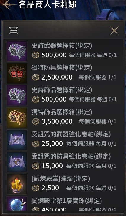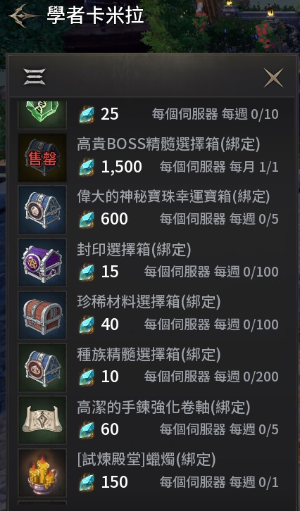 然後打到的襲擊幣能兌換東西 也是有分每周每月的兌換要記得