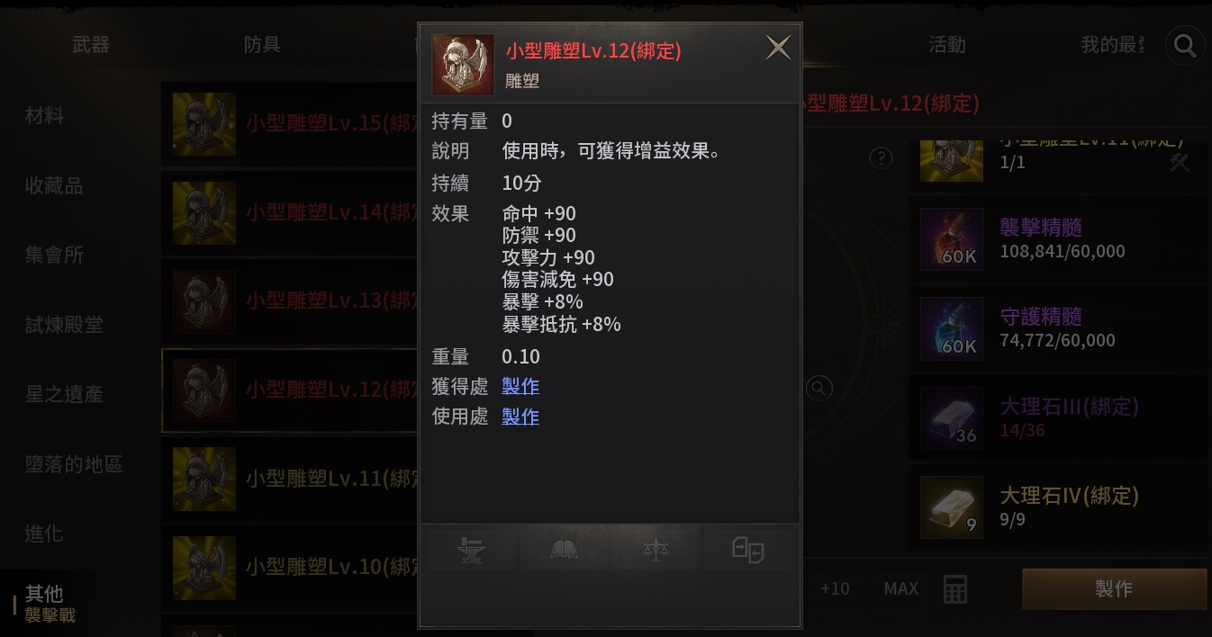 襲擊幣還有個重點就是可以升級小型雕塑 給的能力非常多