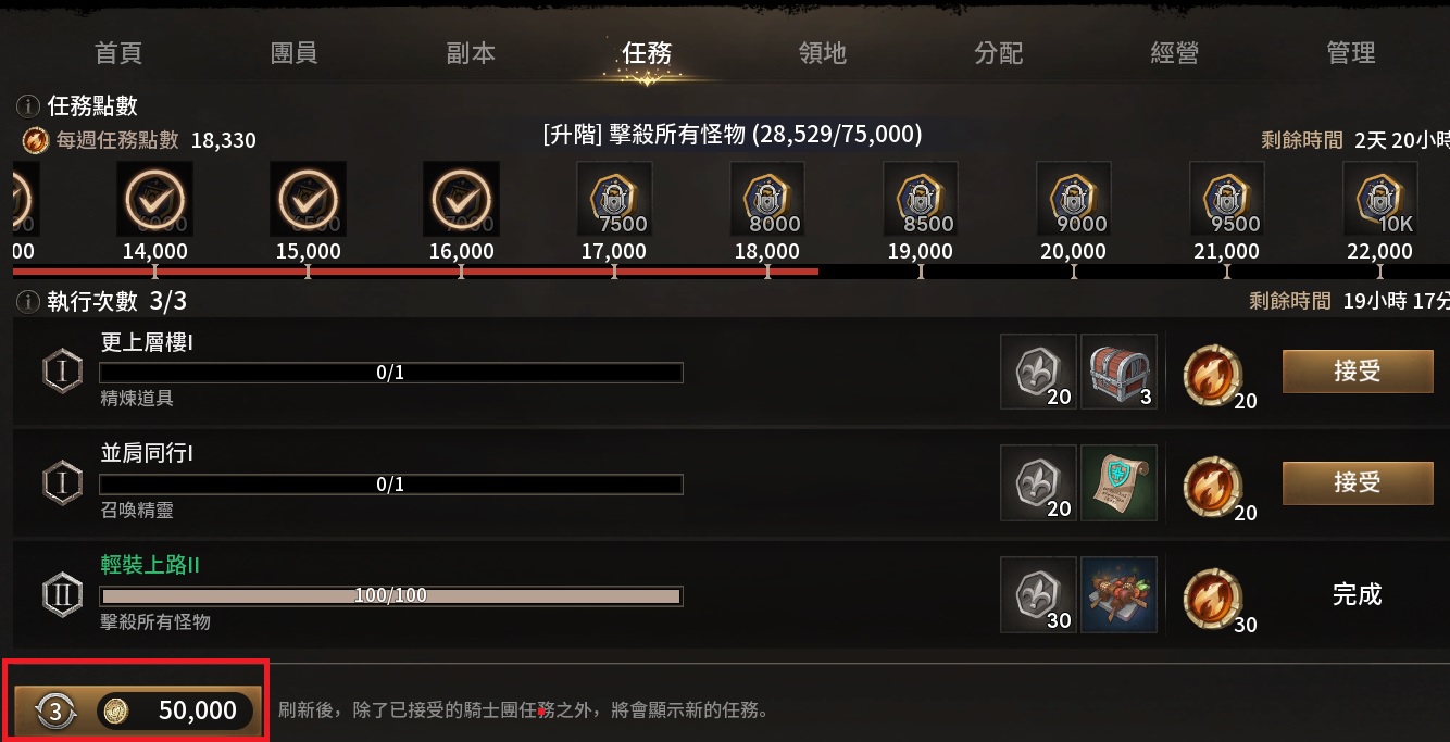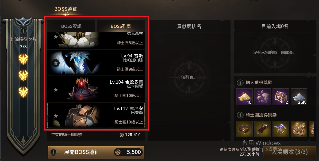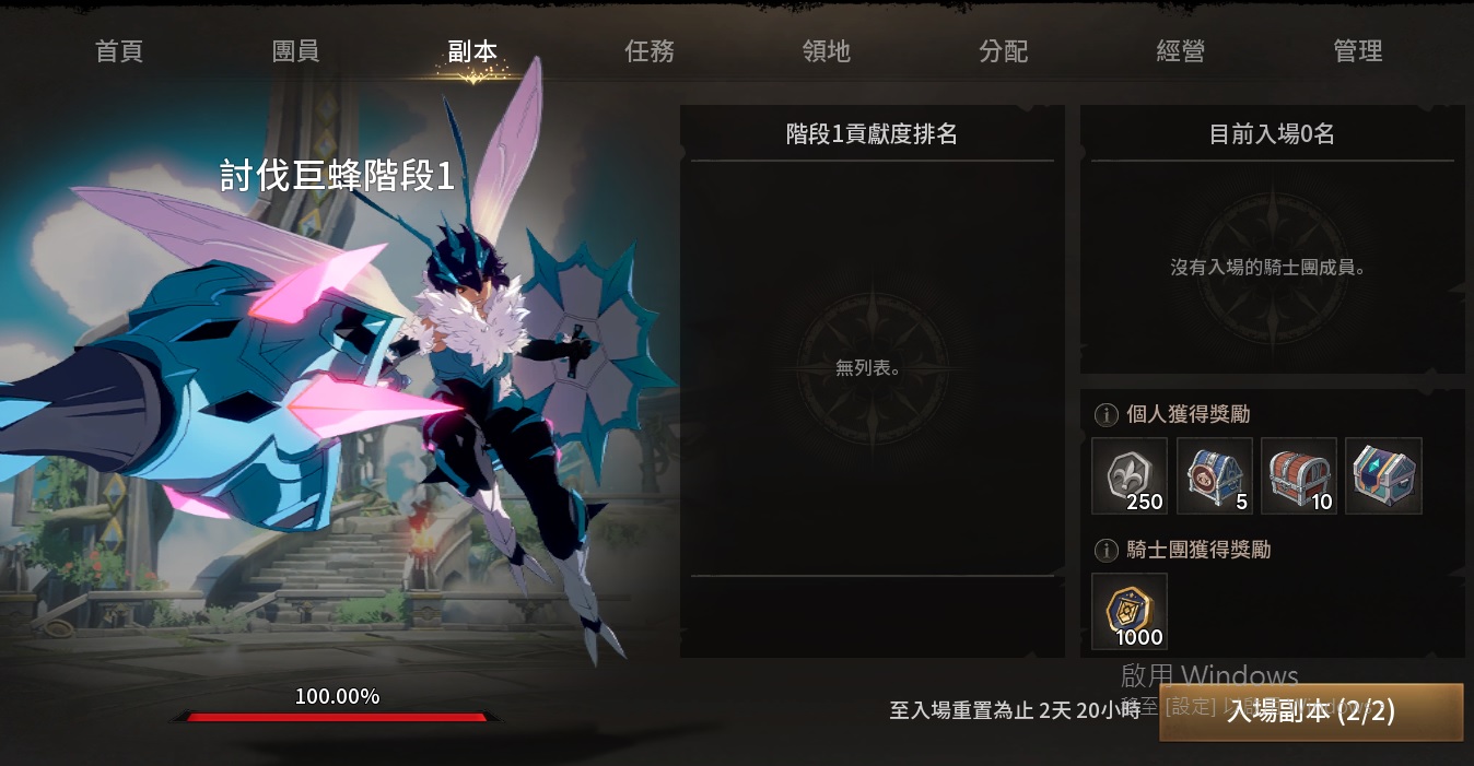 16.每周都有騎士團副本跟領地遠征BOSS可以打