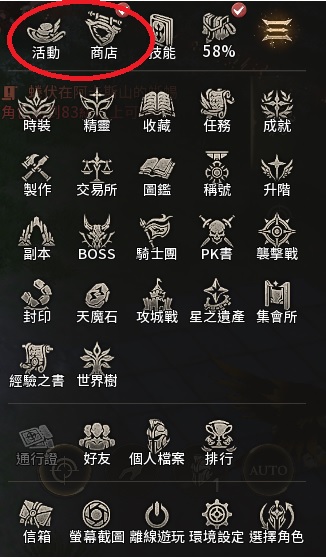 1.首先登入後右上角"活動"跟"商店"的每日領取要記得領