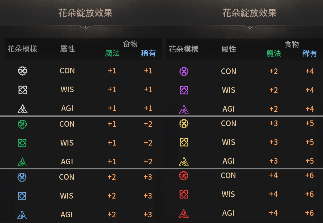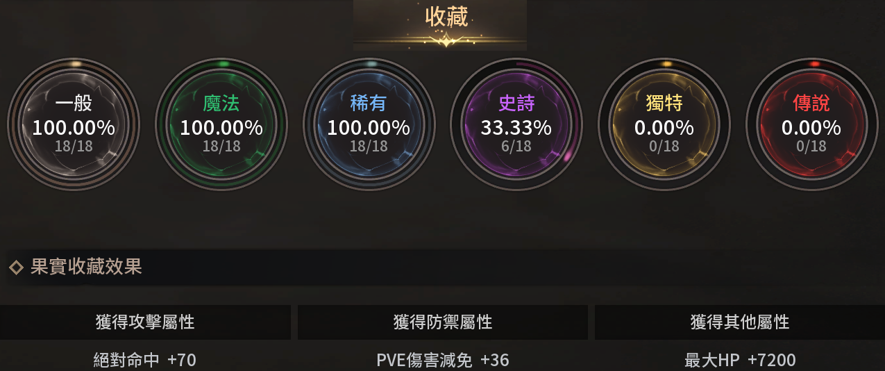 *跟時裝、精靈一樣,白/綠/藍/紫/金/紅果實越多,收藏就越多,加的能力值也就越多。尤其是能增加命中跟防禦,而絕對命中更是重中之重。