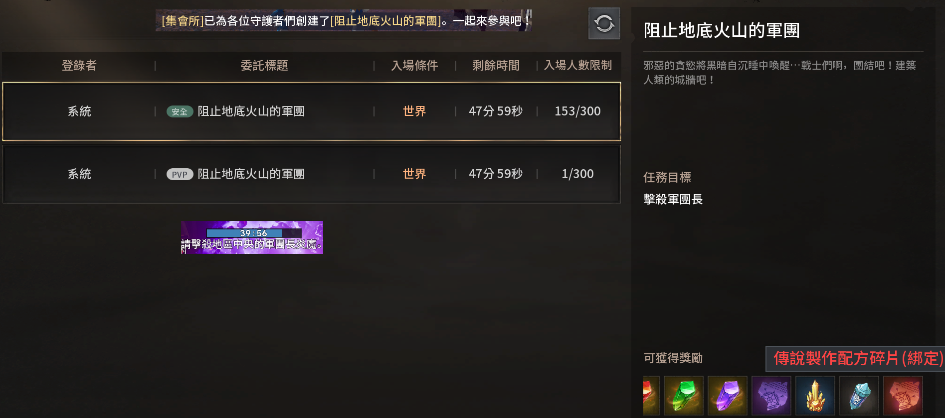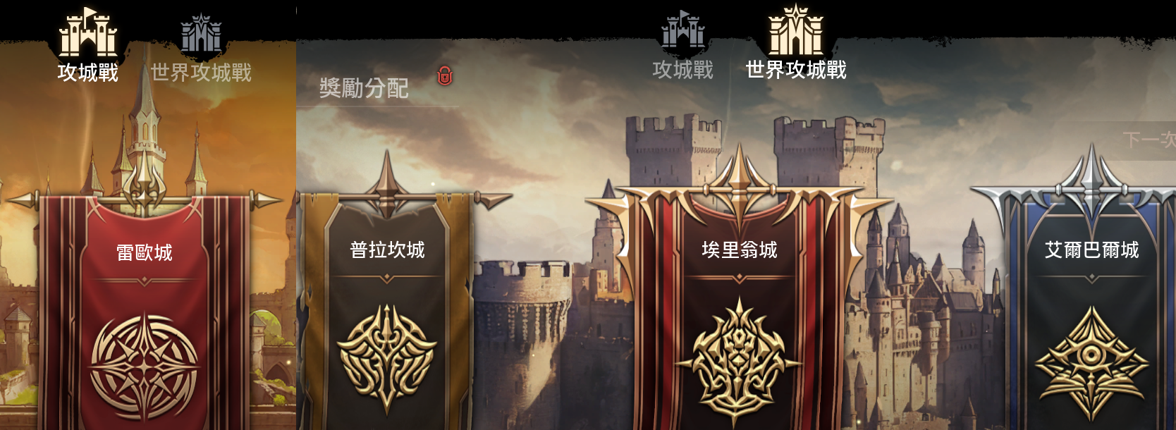 通常會先打安區的,再打PVP的。開場會有左、右、下3隻王要打,但各服大盟會組1st隊伍去搶王,因為擊殺王後會掉做紅武的材料,所以非大盟就在邊邊打怪,