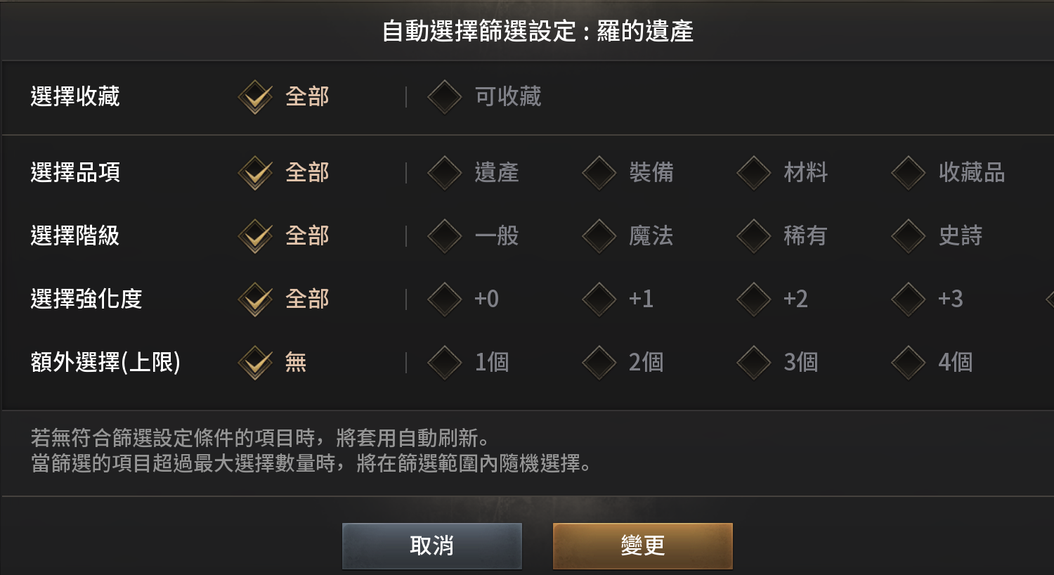 除了自動購買,還可以設定「自動販售」,一鍵將所選種類的物品賣給雜貨商人。