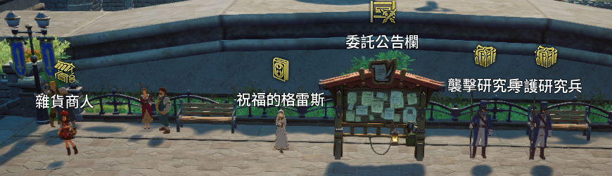 ·委託公告欄:每日接委託的地方,解完委託可獲得經驗、金幣、Zen幣,還有裝備、材料、技能書三中一的跑馬燈。