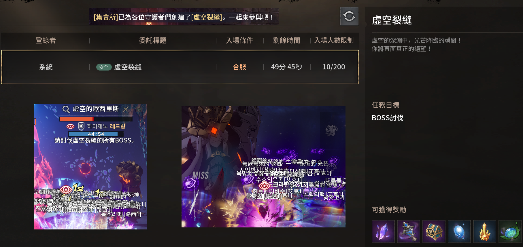 進場後就跟著大家一起把3隻BOSS擊殺就行了,主要為了獲得[裂縫碎片]做護腕。還有機會遇到韓國伺服器玩家。