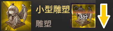 ·用來放裝備、材料、各種物資及未開的寶箱。三條線是背包物品的總覽;頭盔圖案是裝備類;藥水圖案是增益道具類、選擇箱和寶箱;寶箱圖案則是一些幣、卷軸及材料。