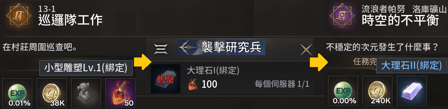 ·支線:在前期算是金幣主要的來源之一,可以配合主線一起解,因為要打的怪大部分是一樣的。