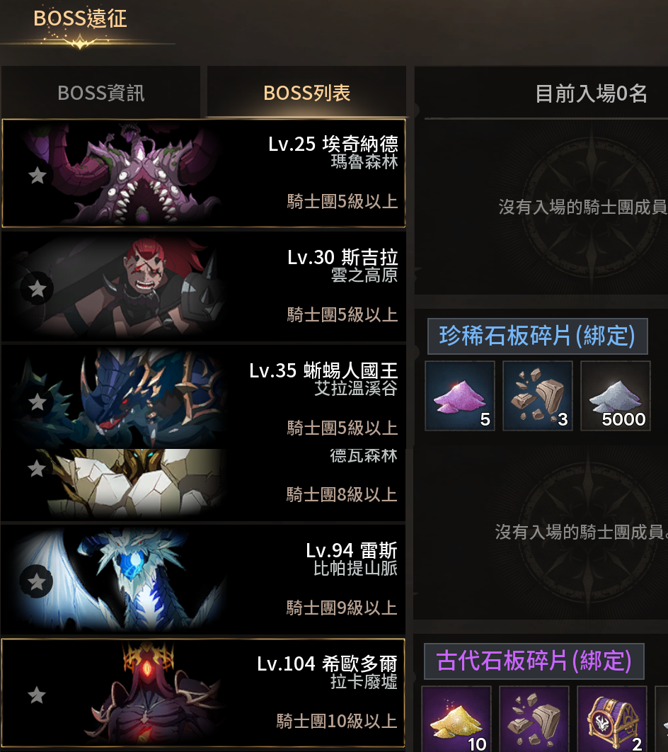 ·等級達到7級時解鎖。除了打王打怪的物品是直接拾取獲得,其餘活動獎勵、騎士團分發/競標的資源,都是要到信箱領取的。